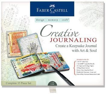 Creative Journaling, or Art Journaling, is the gorgeous combination of our written memories with the visual poetry of designs, drawings, and expressive color! Allow yourself to grow in your talent every day, and then learn from your new skills or broadened creativity as you go back and enjoy your previous pages. Feel free to dive into documenting your adventures in life right away- or follow the included step-by-step directions to get into the groove. A very unique and special element to this kit is the fact the instruction cards are written by nine women who constantly use their own Creative Journals in very personal and unique ways. Their wisdom and pieces are advice have been turned into the step-by-step directions to share!.../ FaberCastell Kit Creative Journaling Boxed / ART PRODUCTS